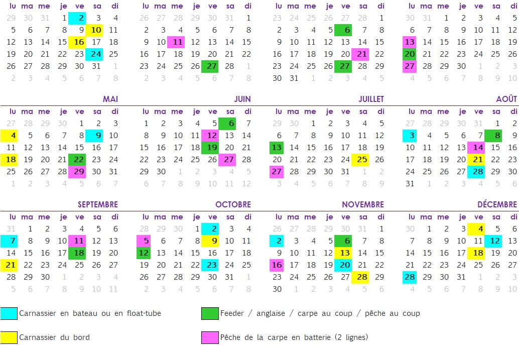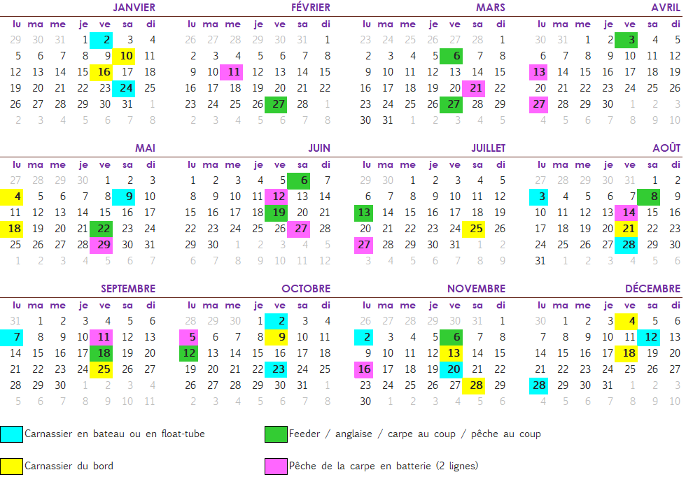 Ce parcours est ouvert aux public pour des journées pêches selon le calendrier ci-dessous défini par la FDPPMA72.